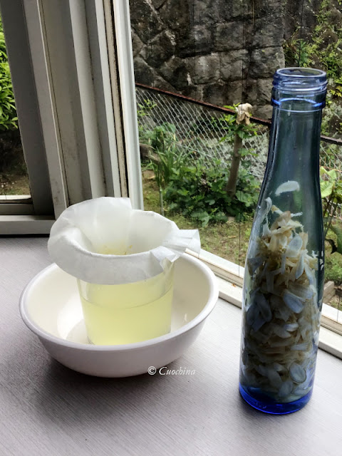 Quindi, filtrare il liquido, travasare in una bottiglia pulita e tenere in frigo.